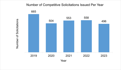 | Solicitations Issued Per Year | 504 | 553 | 558 | 496 | 486 |