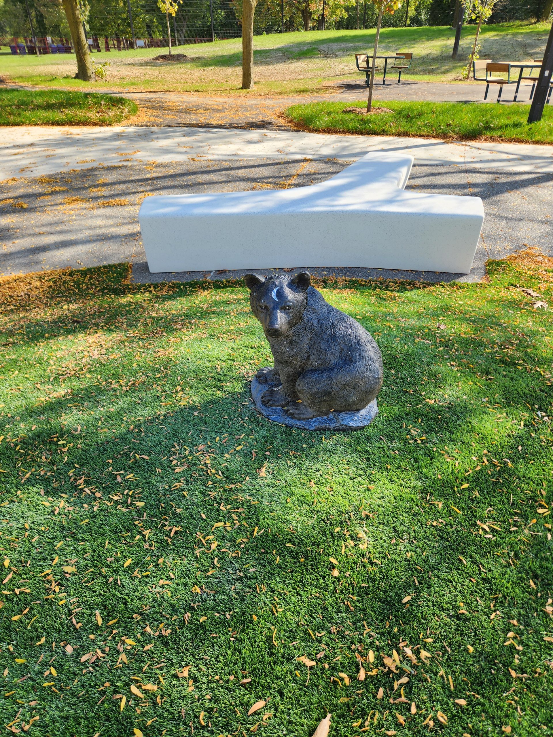 The popular dump bucket feature has returned. Outdoor work is nearing completion: splash pad features have been installed, site furniture installation is underway and planting continues.