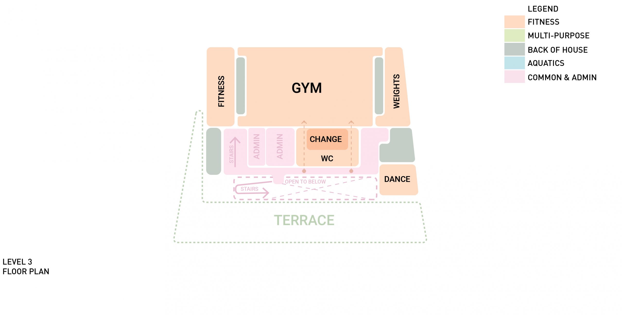 Building on the vision and big moves, and in collaboration with the community and staff, the project team developed a preliminary plan for the community recreation centre. The bubble diagrams below show the general massing of the building, programming, amenities and relationship to the park. The building’s design will continue to be refined in collaboration with the local community.