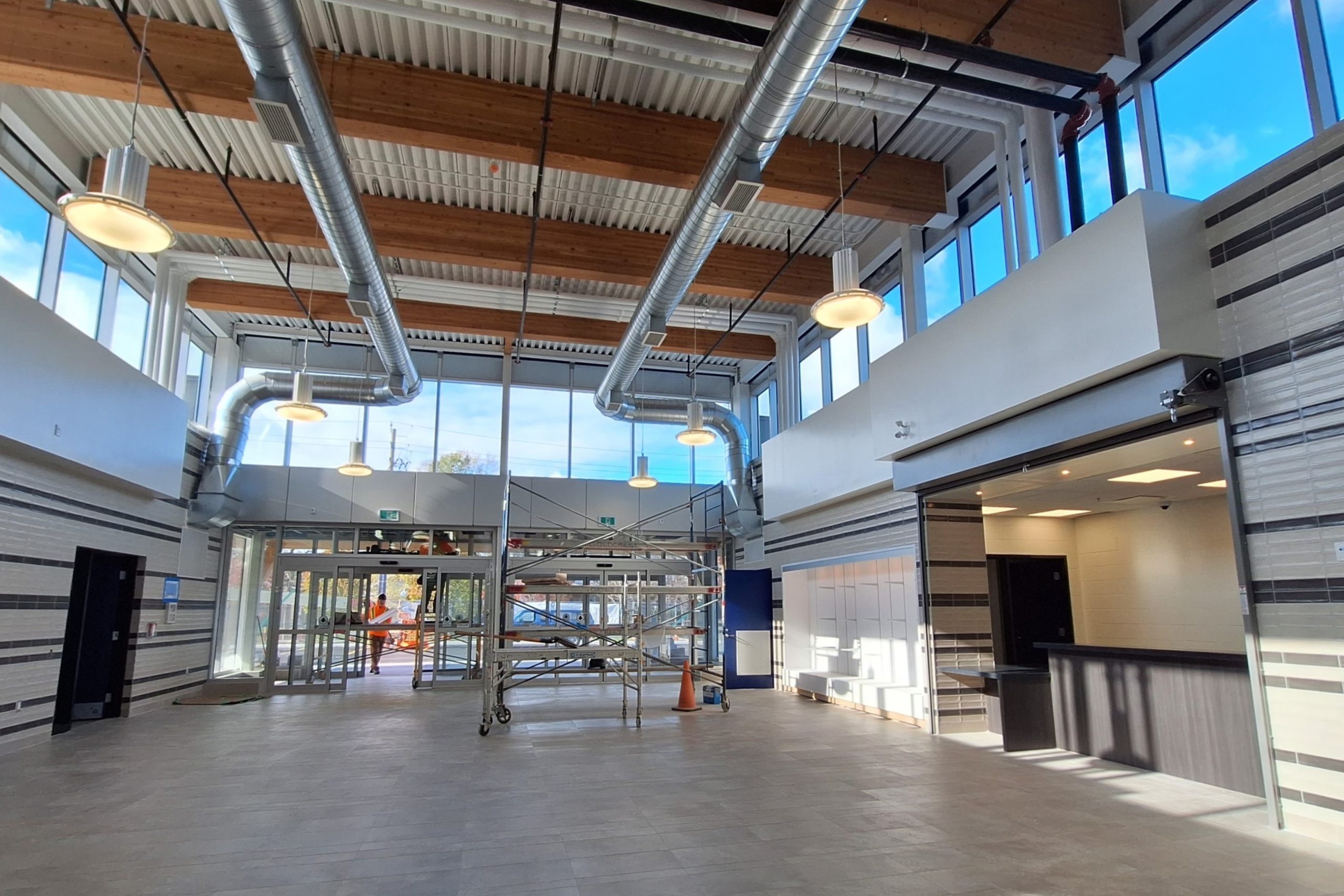 Upcoming work includes cooling down the rink slab and installing exterior exit doors, floor and wall tiles at the entrance, millwork and washroom stalls.