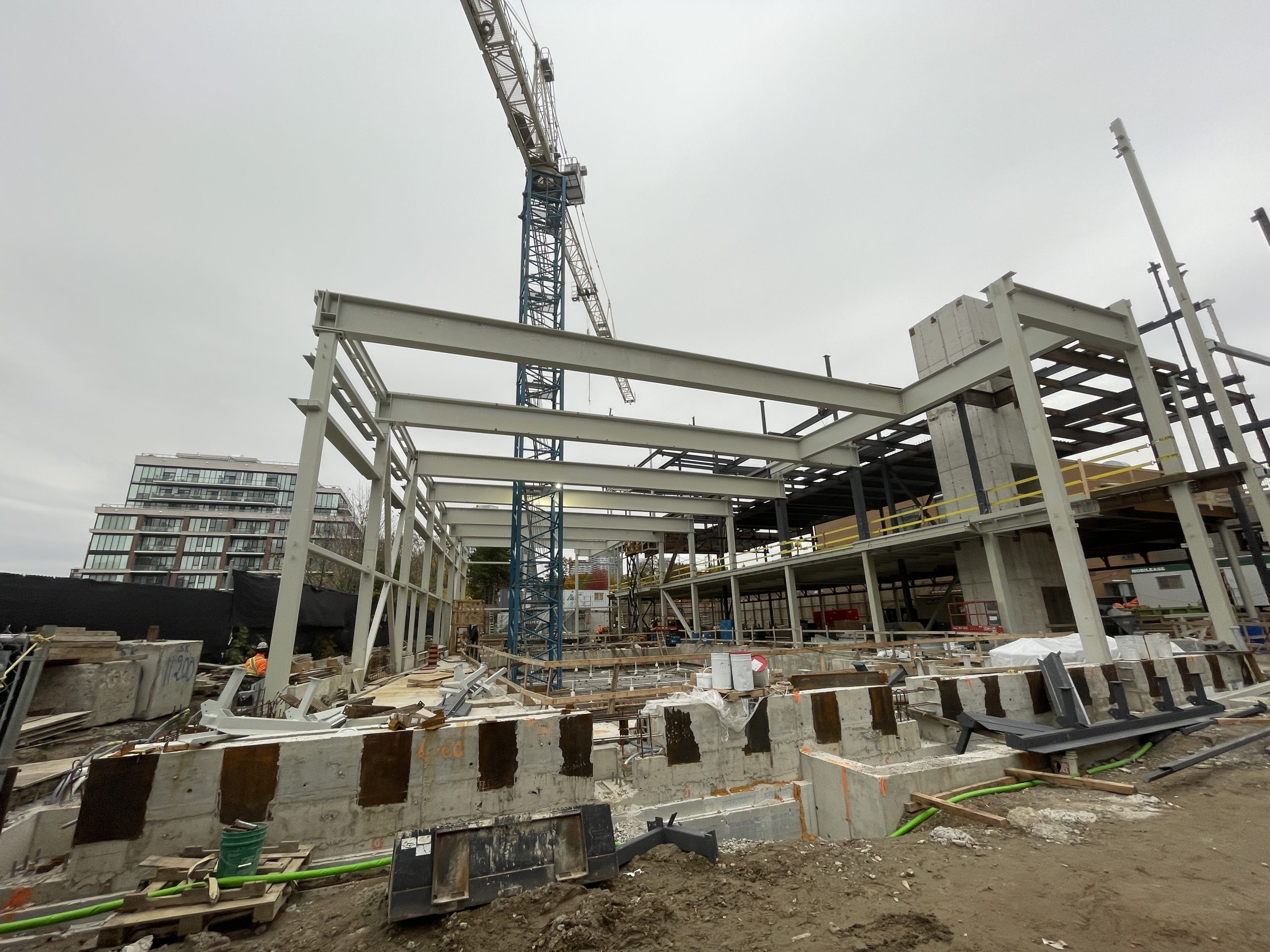 Excavation is underway. Initial work has uncovered rubble from previously demolished buildings and contaminated soil across a large portion of the construction site. Some soil in the southwest corner has been deemed unsuitable for foundations. The project team is working to minimize the impact of these findings on the project timeline.