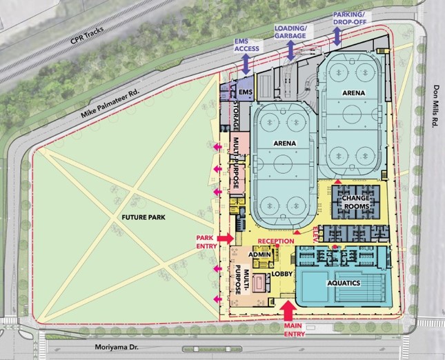 A new Community Recreation Centre (CRC), ice arena and park are coming to the Don Mills community, near the intersection of Eglinton Avenue East and Don Mills Road.