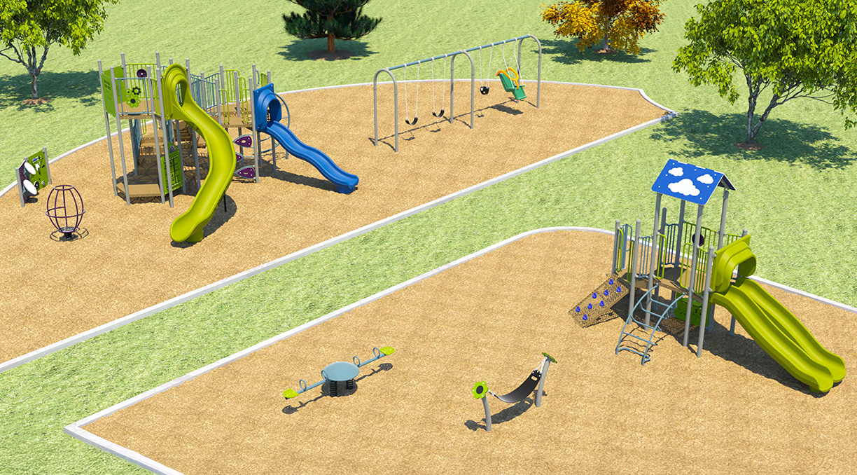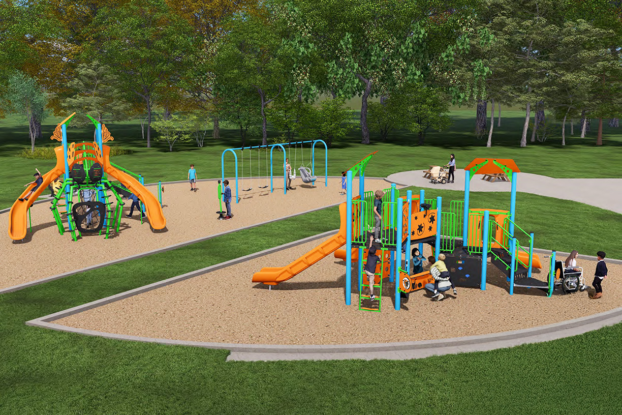 The playground and splash pad will be designed using community feedback. The playground is located at the northeast area of the park and currently includes: