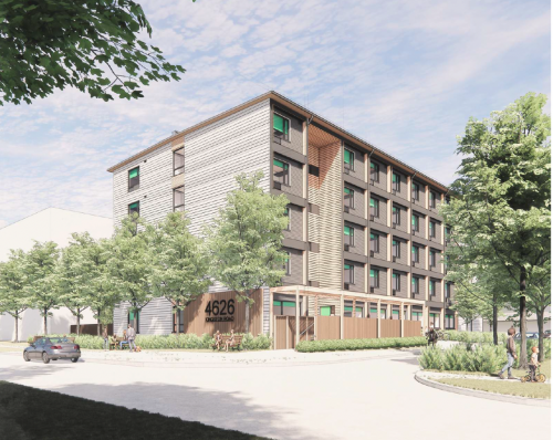 The new modular building includes 64 homes with amenities such as shared laundry, a commercial kitchen, a dining area, a communal area and programming space. Construction is expected to be completed in Fall 2024.
