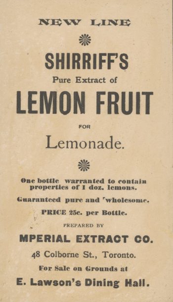 While Toronto’s manufacturing landscape created industry leaders in the meat, bread, and milk sectors, the city was also home to a number of notable manufacturers of products that would have been familiar in any household pantry – staples such as baking powder, jelly powders, flavouring extracts, ketchup, marmalade, mustard, and maraschino cherries.