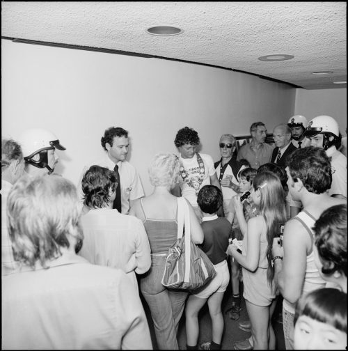 Above Terry’s head hung a banner which read “Scarborough Welcomes Terry Fox.” Children from Scarborough’s Parks & Recreation summer camp program were seated near the podium to welcome the young runner