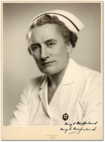 In 1938 she returned to the hospital where she became part of the staff of the school. Upon Miss Locke’s retirement in 1942, Macfarland was appointed Superintendent of the School for Nurses. She was the first Toronto General Hospital graduate to become Superintendent of the school.