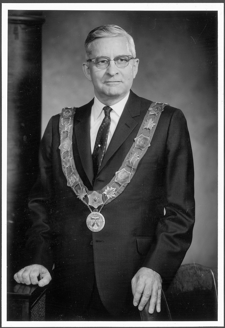 Albert Campbell (1910-1973) was elected reeve of Scarborough in 1957. He continued in that role until 1967, when his title was changed to mayor – the first for the Borough of Scarborough. His final political position was Chairman of Metropolitan Toronto, taking that office in 1969.