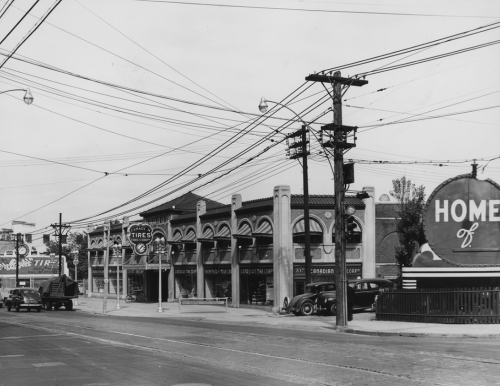 In 1948 the traffic on Yonge Street and other major arterial roads was so bad that the City’s Committee on Works recommended that the stretch of Yonge Street from Terauley Street (near Dundas) to Heath Street (north of St. Clair) be widened to approximately 86 feet. In preparation for this work, Alderman Allan Lamport, who would become Chairman of the TTC in 1955, commissioned a series of photographs along the east and west sides of Yonge Street to document existing conditions.