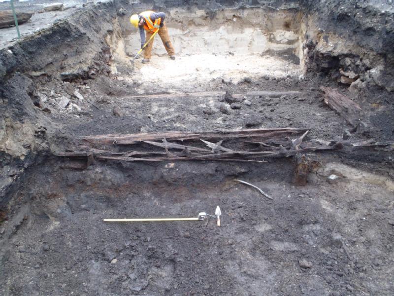 Photo gallery of 19th-century wharf cribbing and rail ties found at 125 The Esplanade while preparing the site for the temporary North Market.