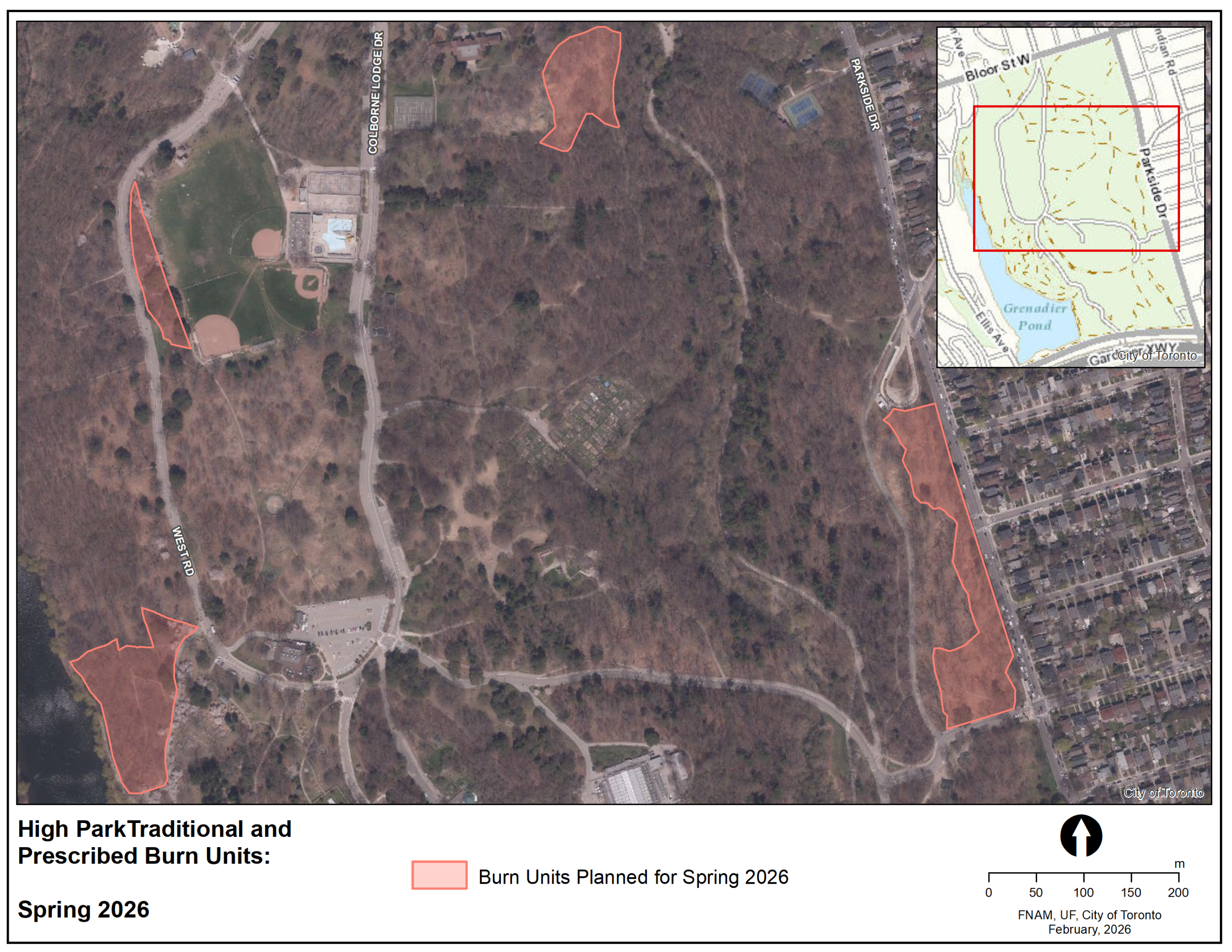 The City of Toronto completed a traditional and prescribed burn (Biinaakzigewok Anishnaabeg) in High Park and South Humber Park on April 17, 2025. Collaboration with the Indigenous Land Stewardship Circle brought Indigenous ceremony and traditional knowledge to the centre of this year’s burn.